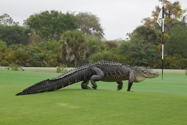 Un imponente cocodrilo de 4 m. de largo y dientes como sierras invade un campo de golf en Florida 12 de marzo de 2015