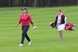 Raquel Carriedo dijo adiós a la competición con su hijo de 11 años de caddie y birdie al último hoyo 26 de octubre de 2016