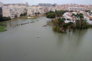 La lluvia hizo estragos en Alicante Golf. El agua anegó el campo convirtiéndolo en un gran lago 16 de marzo de 2017